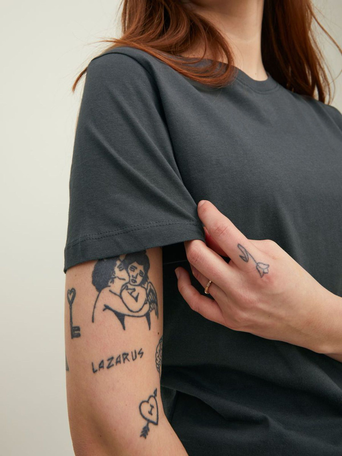 Ця футболка прекрасно поєднується з джинсами будь-якого відтінку, надаючи вашому образу невимушеності та стильності. Для більш елегантного вигляду носіть її з класичними брюками або піджаком. Не забудьте доповнити образ стильними кросівками або туфлями для завершення вашого образу.