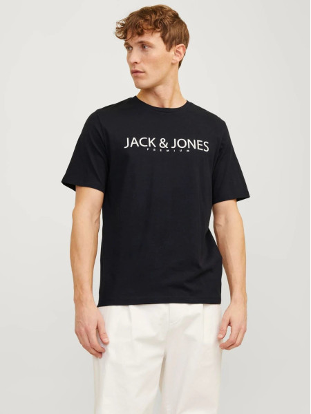 Футболка з лого-принтом Jack & Jones, чорний колір, чоловічий фасон