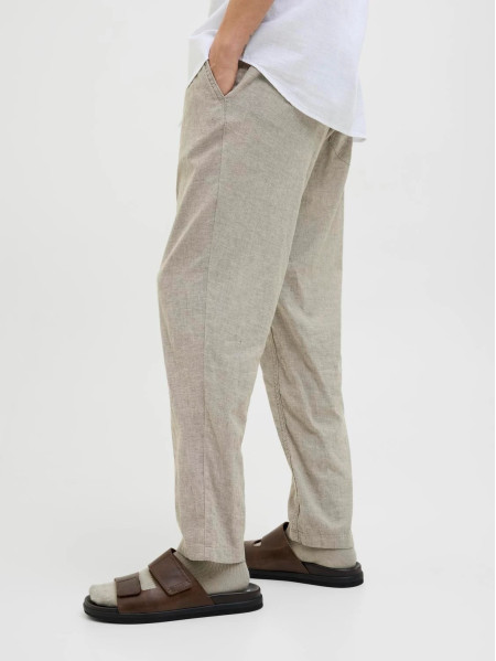 Чоловічі бежеві лляні штани Jack Jones фасону Carrot з середньою посадкою