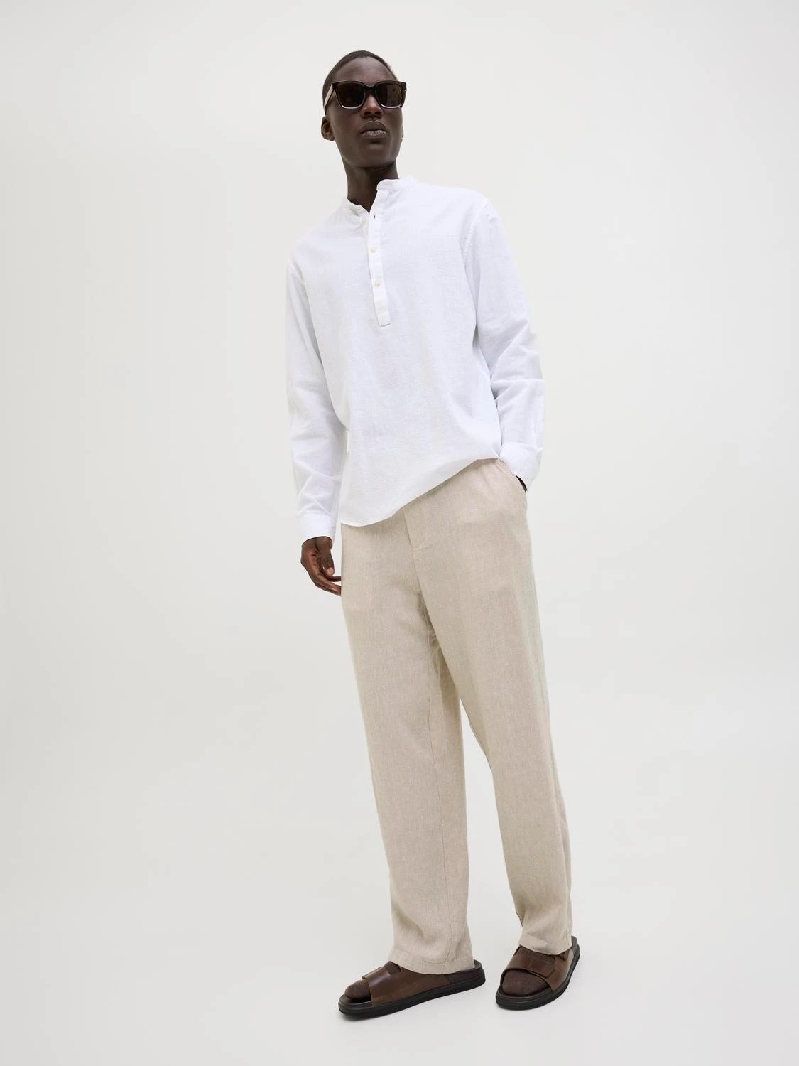 Чоловічі лляні штани Jack Jones, бежеві, вільного крою з середньою посадкою