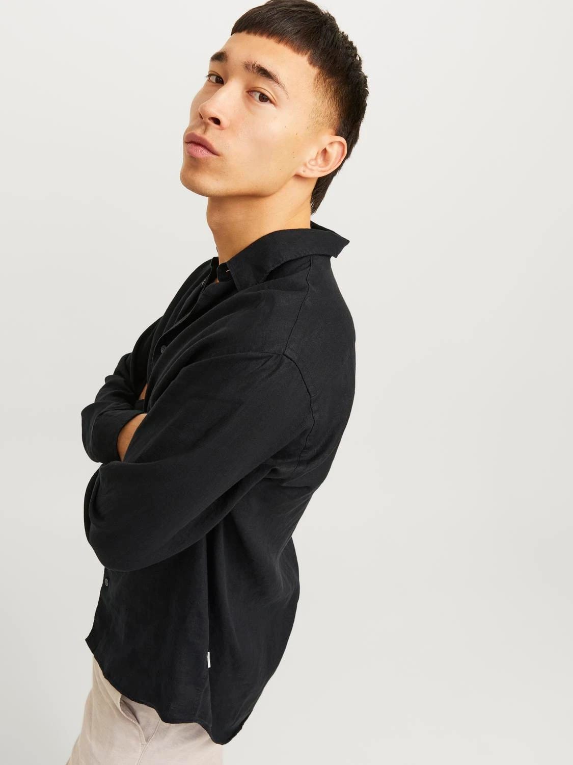 Лляна сорочка з довгим рукавом Jack Jones для чоловіків у чорному кольорі