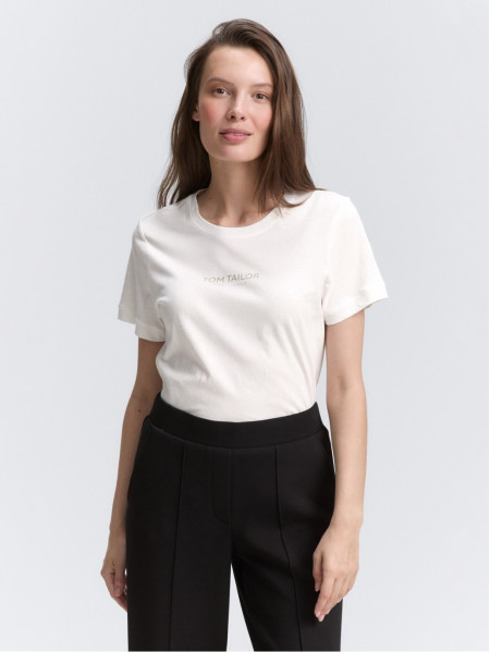 Футболка з лого-принтом, біла, Regular Fit, Tom Tailor для жінок